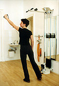 Die Medizinische Trainingstherapie (MTT) beinhaltet Übungen zur Verbesserung der Muskelkraft, Muskelausdauer und Koordination, sowie das Erlernen von physiologischen Alltagsbewegungen. Die MTT ist eine Behandlungsform, die ausschließlich aus aktiven Übungen ohne manuelle Mitwirkung des Physiotherapeuten besteht. Eine besondere Bedeutung bekommt die MTT bei der Behandlung von Instabilitäten oder Hypermobilitäten. Durch ein individuelles Gerätetraining mit optimaler Stimulation, werden z.B. bei Rückenschmerzen eine gesunde Haltung der Wirbelsäule erarbeitet und die Rückenmuskulatur gekräftigt. Unter Berücksichtigung der täglichen Belastungen des Patienten und seiner Beschwerden erstellen wir einen individuellen Behandlungsplan. Als Grundlage dienen die Diagnose des Arztes und unsere physiotherapeutische Funktionsuntersuchung. Die Übungen werden unter Berücksichtigung der Bewegungsbahn, des Wiederstandes und der Übungswiederholung exakt dosiert. Das Training besteht aus : 1. Gelenktraining: Übungen zur Verbesserung der Beweglichkeit (Mobilisation), sowie Übungen zur Verminderung der Überbeweglichkeit (Stabilisation). 2. Muskeltraining: Übungen zur Verbesserung der Muskelkraft und Ausdauer. 3. Bewegungskoordination: Je öfter eine Bewegung durchgeführt wird, desto mehr wird sie automatisiert (d.h. im Zentalnervensystem „gespeichert“). 4. Prophylaxe und Rehabilitation: Übungen zum Erlernen physiologischer Alltagsbewegungen und zur Verbesserung der Belastbarkeit im Alltag. Unsere Patienten werden solange einzeln behandelt, bis sie ihre Übungen eigenständig ausführen können. Sie haben dann die Möglichkeit im Anschluß an die Therapie, nach ihrem Trainingsplan in unserer Praxis zu trainieren. |